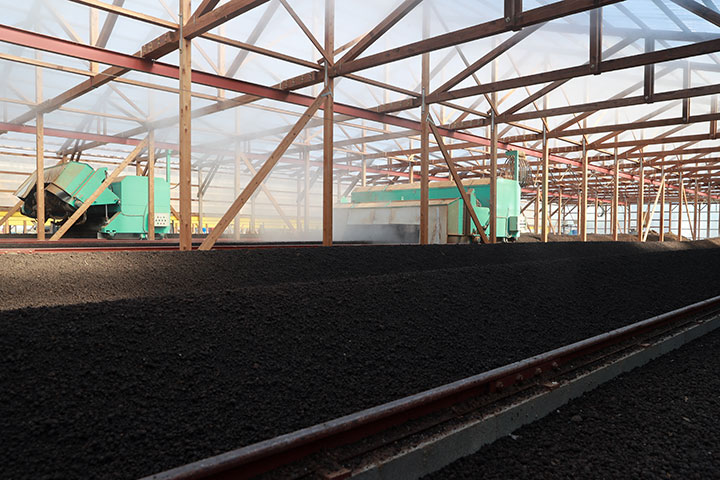 当農場で排出された鶏糞を、夏場で8日から2週間、冬場で3週間から4週間鶏糞の状態を確認しながら醗酵層で攪拌をしながら醗酵させた後、乾燥舎で自然乾燥させることで臭いの少ない醗酵鶏糞堆肥を製造しております。